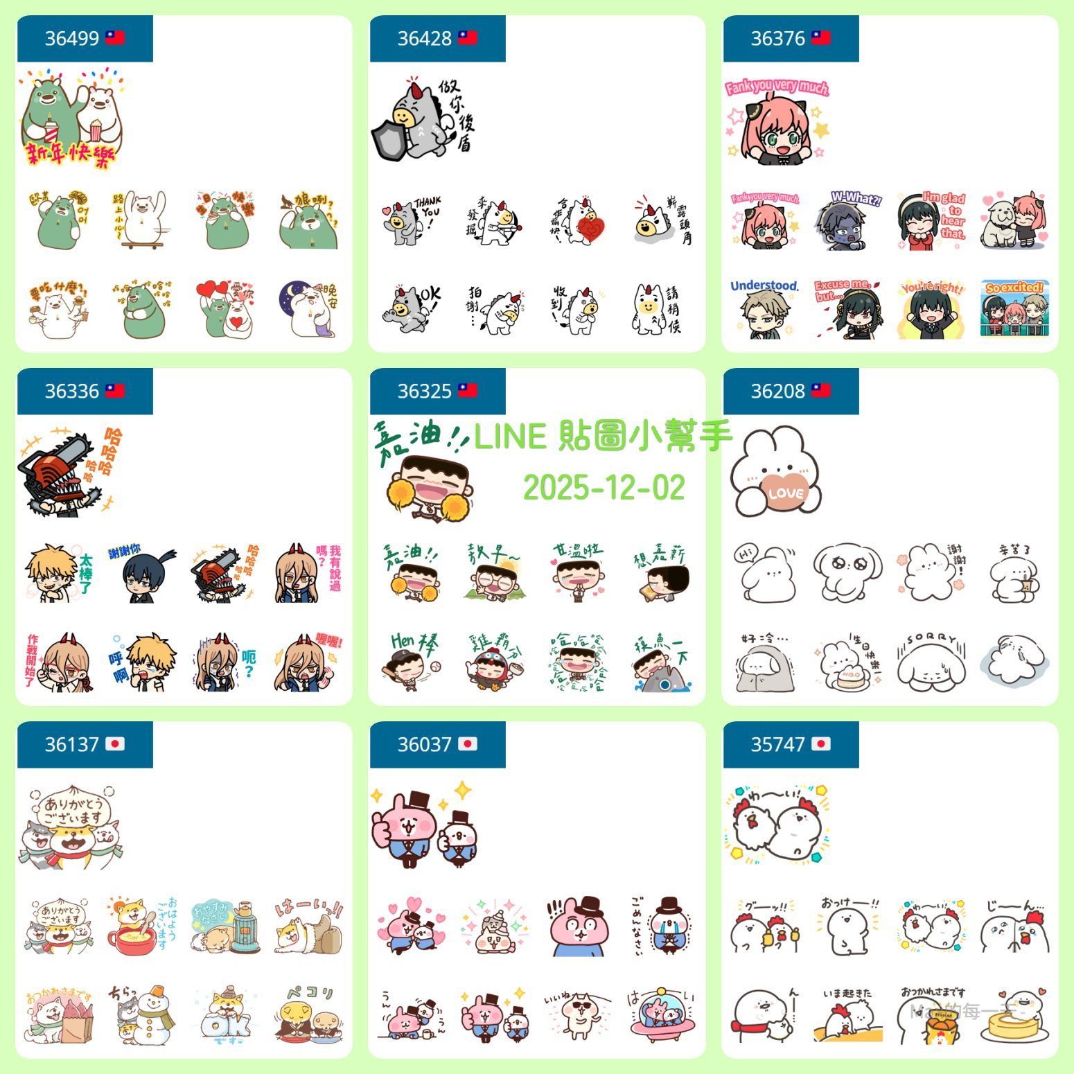 上一周的貼圖:LINE 免費貼圖 2025-11-25