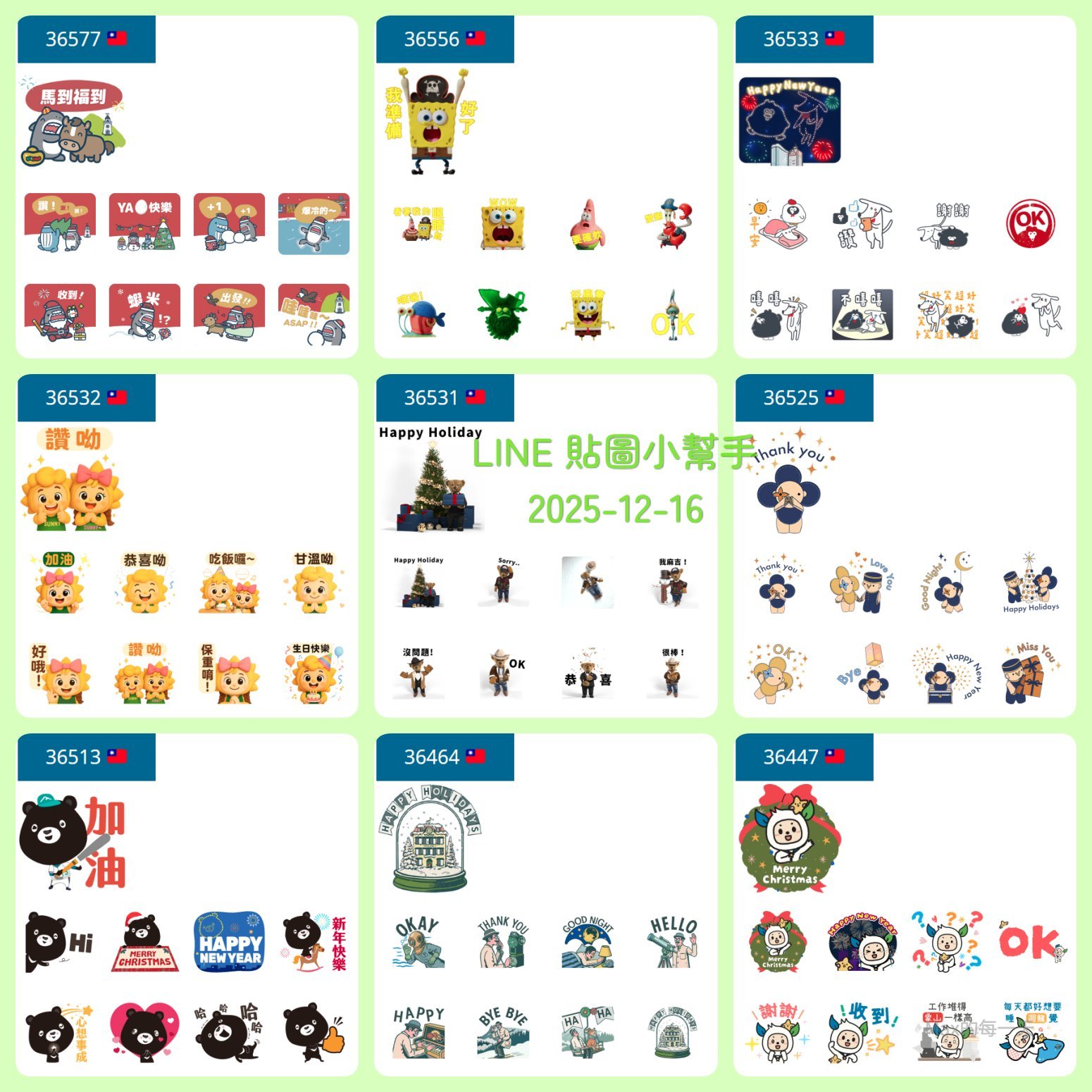 上一周的貼圖:LINE 免費貼圖 2025-12-09