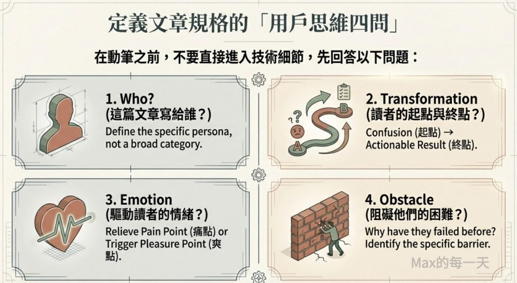 為什麼這種精準的用戶畫像至關重要?因為它強迫你思考一個活生生的人所面臨的真實困境。當你為「Lisa」寫作時,你的內容會自然而然地聚焦於解決她的痛點,而不是試圖滿足所有人,最終卻誰也沒滿足。
