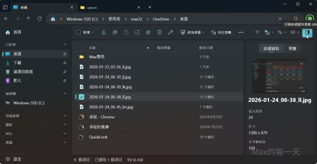 Files 最直觀的優點就是它的外觀。它採用與 Windows 11 系統一致的設計語法,看起來非常乾淨現代。最實用的功能之一就是分頁標籤,這讓你可以在同一個視窗裡開啟多個資料夾,就像使用瀏覽器一樣,省去在多個視窗之間切換的麻煩,桌面也不會再擠滿各種視窗。