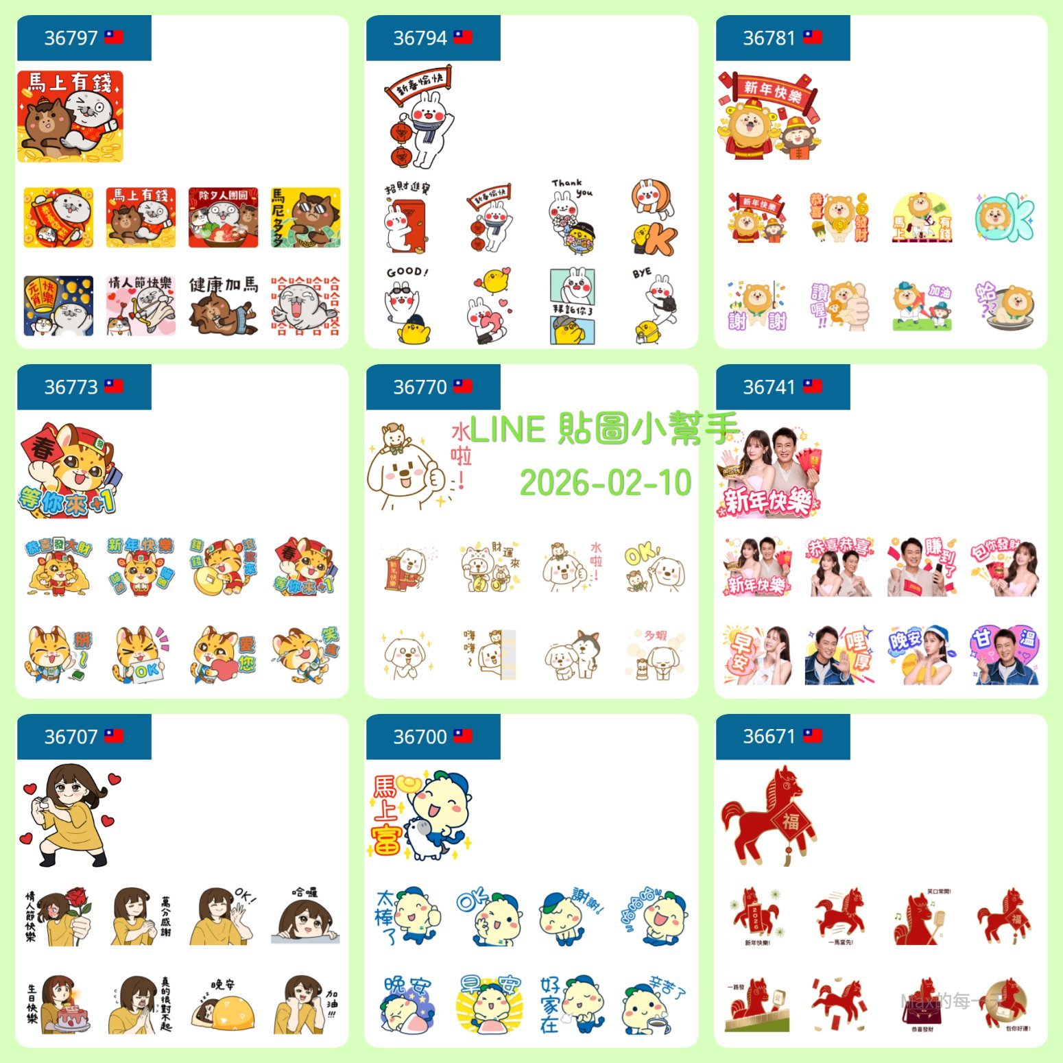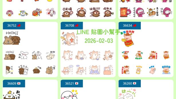 上一周的貼圖:LINE 免費貼圖 2026-02-03
