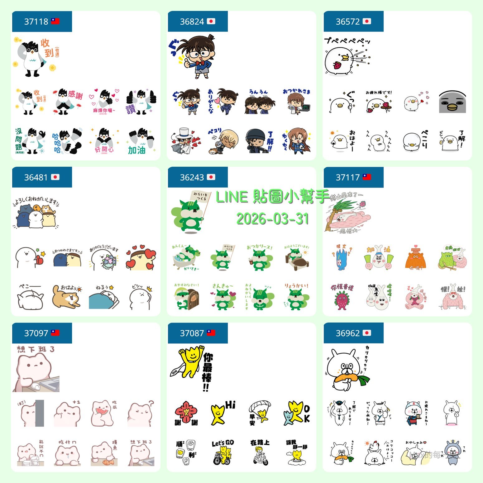 上一周的貼圖:LINE 免費貼圖 2026-03-24