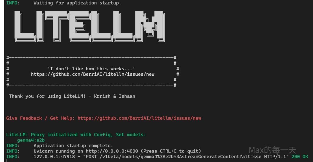 當 LiteLLM 啟動後,它預設會監聽在 WSL 的 http://0.0.0.0:4000。此時,你只需要修改 Gemini CLI 的環境變數,將其指向這個本地代理即可: