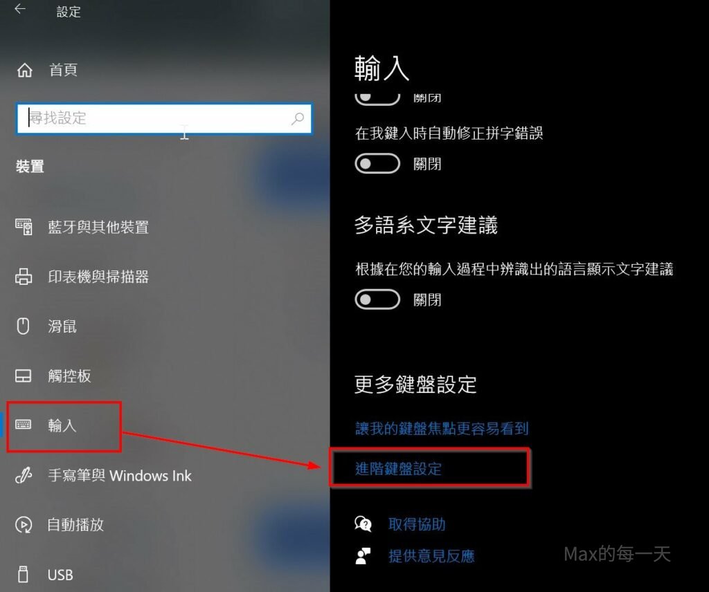設定方式: 設定 – 輸入 – 進階鍵盤設定