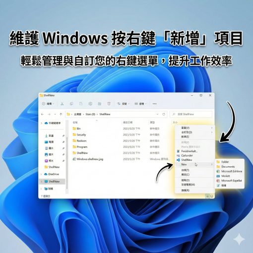 輕鬆管理與自訂您的右鍵選單,能幫助您提升不少工作效率。 其實在遠古時代的Windows 系統中,就有很多方便的小工具,它們有圖形化的介面,可以讓您直接點選來維護右鍵的選單 […]