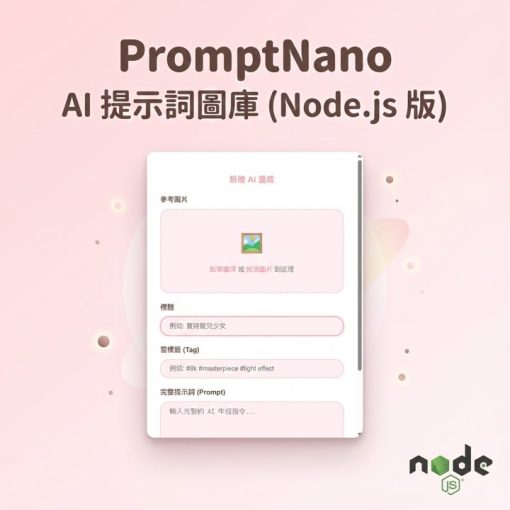 PromptNano 是一個輕量級、溫暖可愛風格的 AI 提示詞(Prompt)管理工具。透過視覺化的圖庫介面,讓使用者能輕鬆收藏、檢索與管理 AI 生成圖片的提示詞。 […]