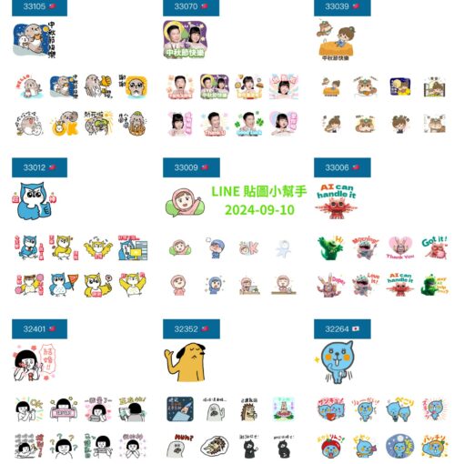 這周很多日本貼圖,台灣小怪獸是特效貼圖,安安寶寶與合作金庫這2組是動態圖。 最近天氣有微微轉涼,2024年中秋節在:2024年9月17日 星期二, 預祝大家中秋佳節愉快。 […]