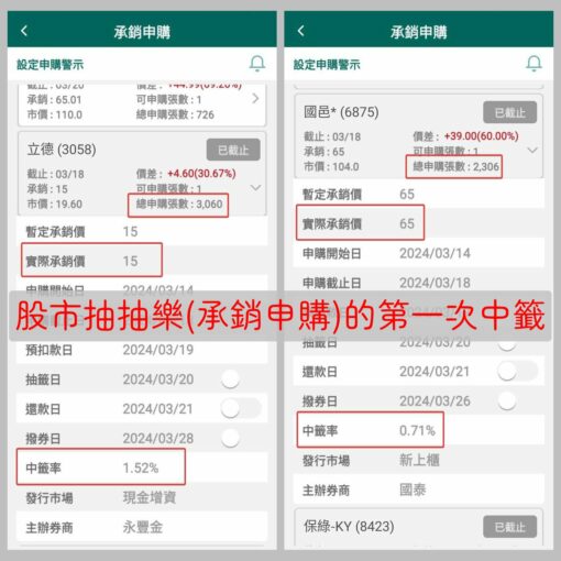 入社會這麼多年, 第一次中籤, 抽抽樂(承銷申購) 的規則很簡單, 要先花台幣$20 才有抽籤資格, 接著要預先扣繳「承銷價」x 1000 的股票錢, 由於是一個帳戶一抽 […]