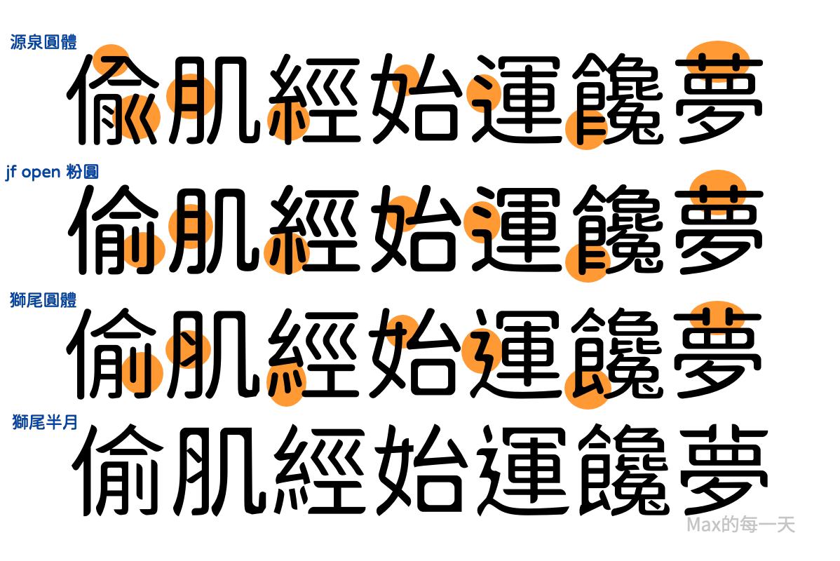 Max 隨手修改了一下Google提供的字型檔,之前是完成思源黑體的拔腳,一下就就完成了,就順便挑戰一下吧黑體變成圓體,過程是滿有趣的,但改到最後,就開始有點難。而且寫到 […]