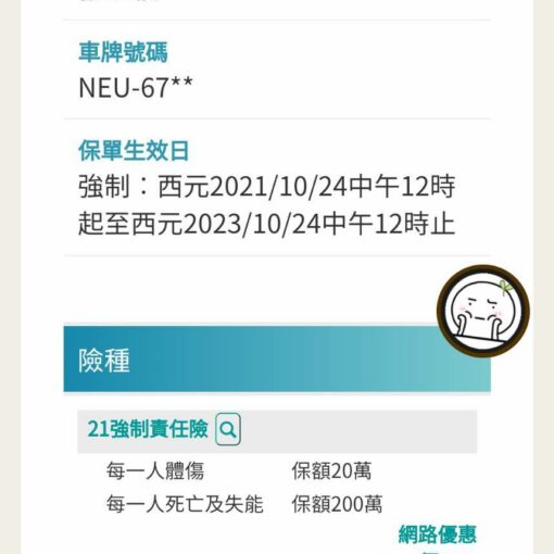 家裡的汽/機車,強制險即將到期,有收到保險公司寄來的續保的紙本的繳費單,但是居然沒有優惠。保一年是 $658元,剛好在網路上看到新安東京(tmnewa),還有華南產物保險 […]