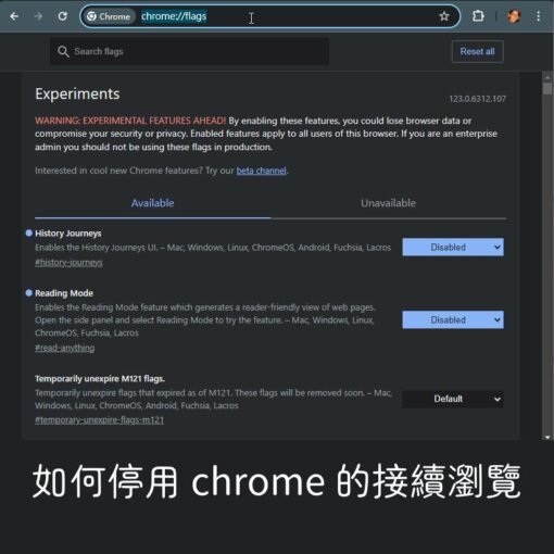更新:目前 chrome 128.x 以後的版本, 都還沒找到可以關閉 resume browsing 的方法。 chrome 瀏覽器的接續瀏覽功能, 不好用, 舉例來說 […]