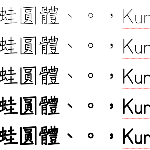 苦累蛙圓體是紅道字體的補字計畫。與原作者的主要差異是調整部件寫法、新增中文字、增加為5個字重、增加一些符號。可以免費商用,歡迎大家自由應用、自由改作! Kurewa go […]