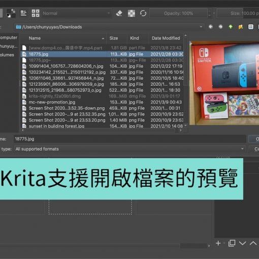 Max 常在使用的繪圖軟體 Krita 的 5.0.0 prealpha 版本,在開啟圖檔進行編輯前,終於有預覽的功能,之前一直很困擾,因為舊的版本在開啟檔案時的對話框裡 […]